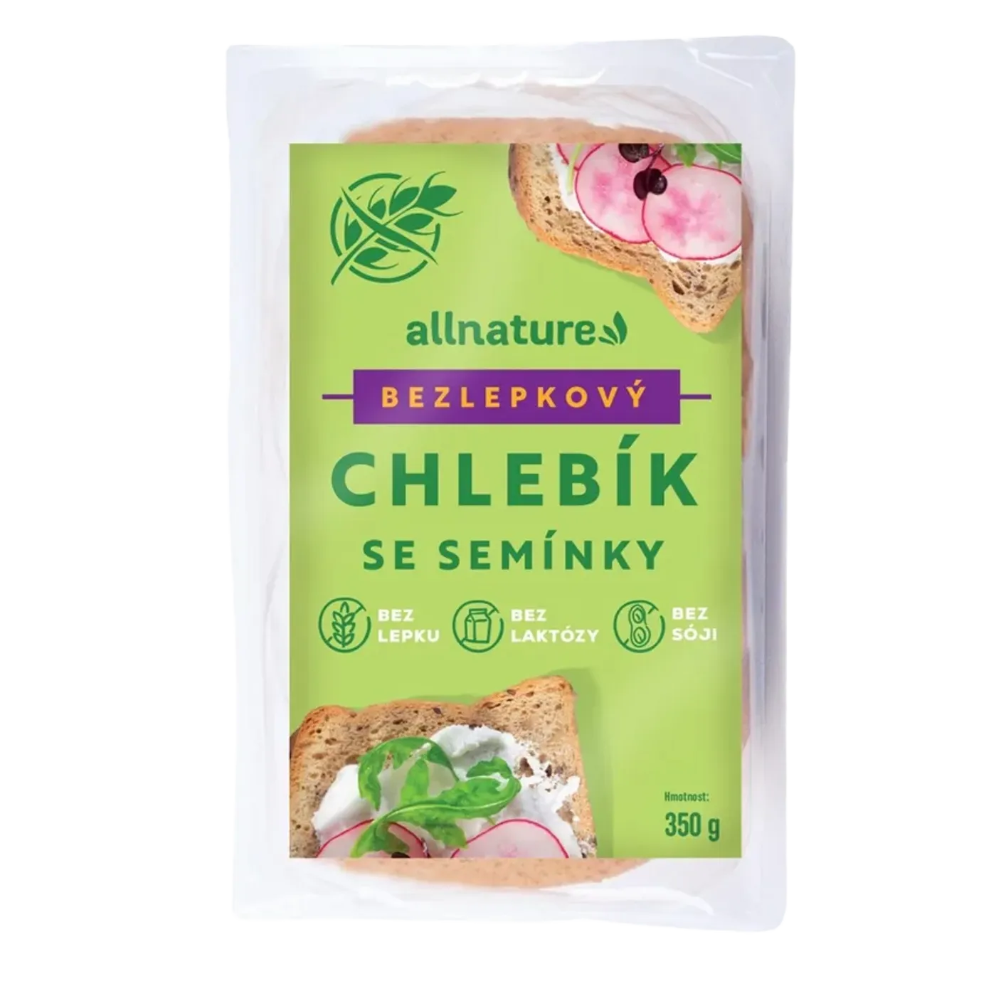Allnature Bezlepkový chlebík se semínky je skvělá volba pro všechny, kteří hledají zdravější alternativu klasického pečiva.