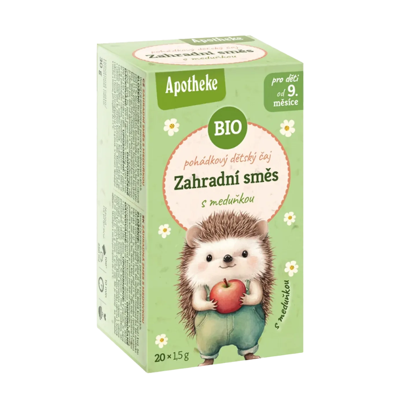 Apotheke Pohádkový dětský čaj Zahradní BIO je ovocný čaj aromatizovaný, porcovaný v nálevových sáčcích. Obsahuje meduňku a je určený dětem pro doplnění pitného režimu.