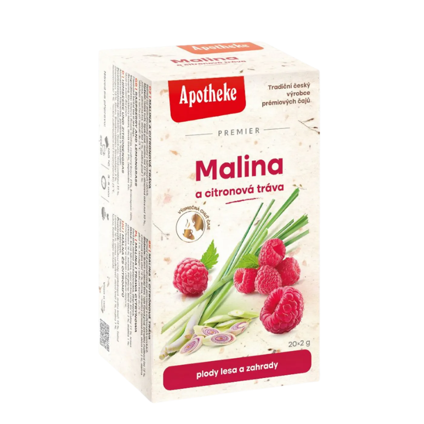 Apotheke Premier Čaj Malina s citronovou trávou a stévií 20 x 2 g