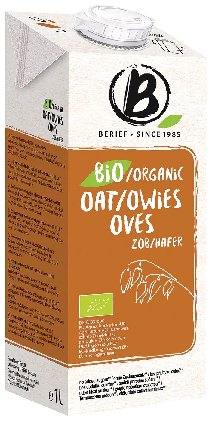 Tento ovesný nápoj (neboli tzv. ovesné mléko) je vyroben z celého bio ovsa a neobsahuje aromata, cholesterol, mléčné bílkoviny a laktózu a obsahuje pouze 1,4 % tuku.