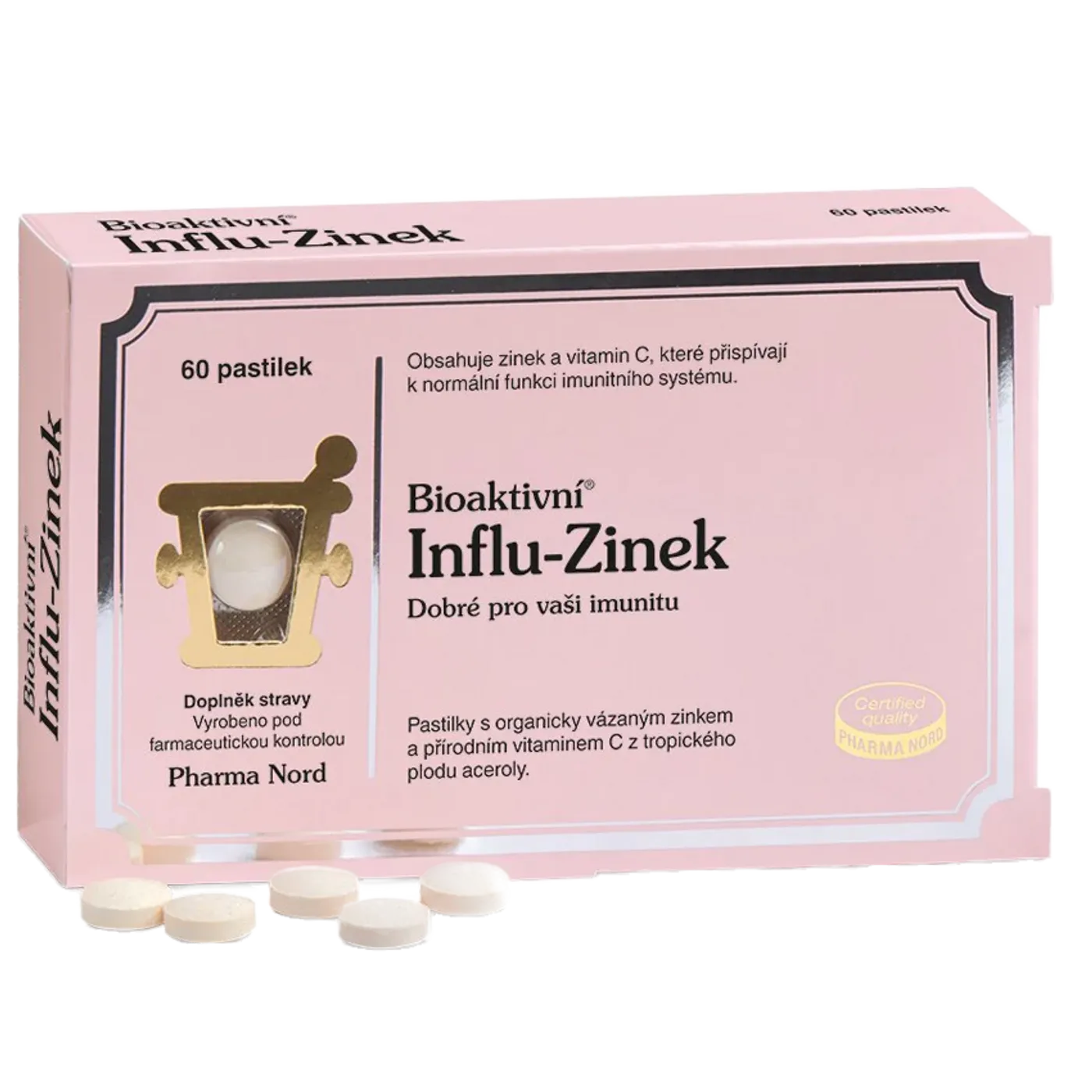 Bioaktivní Influ-Zinek jsou chutné pastilky s organicky vázaným, biologicky dostupným zinkem a přírodním vitaminem C ve formě výtažku z třešní aceroly.