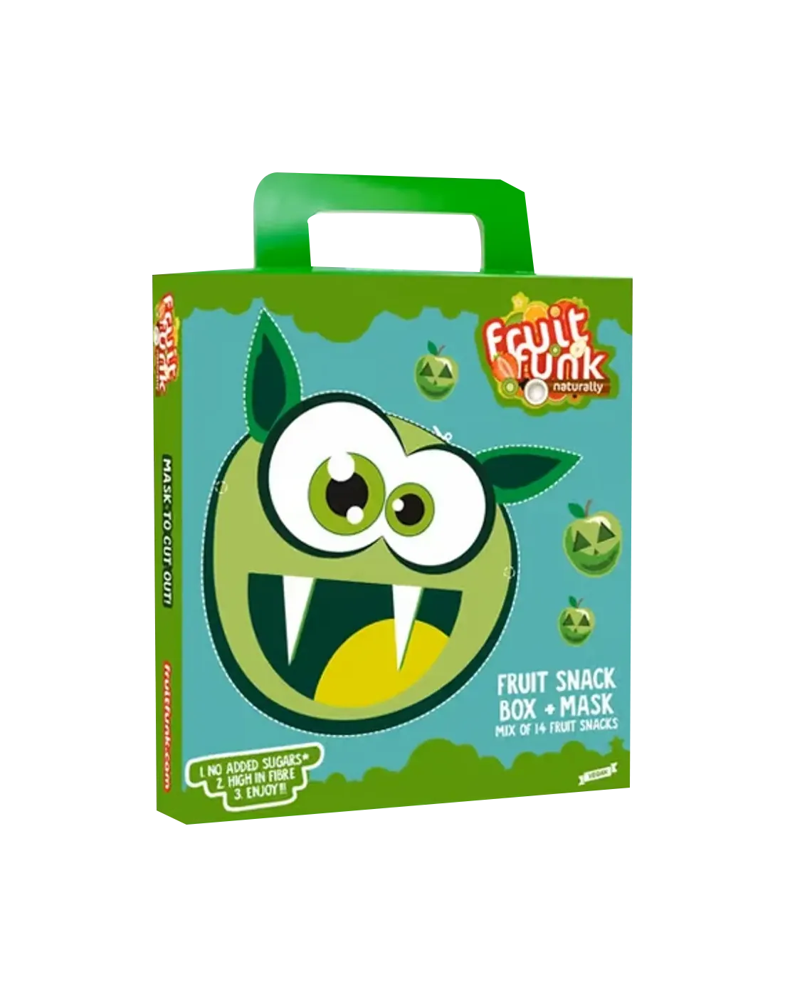 Mix ovocných snacků bez přidaného cukru s maskou se strašidelným motivem.