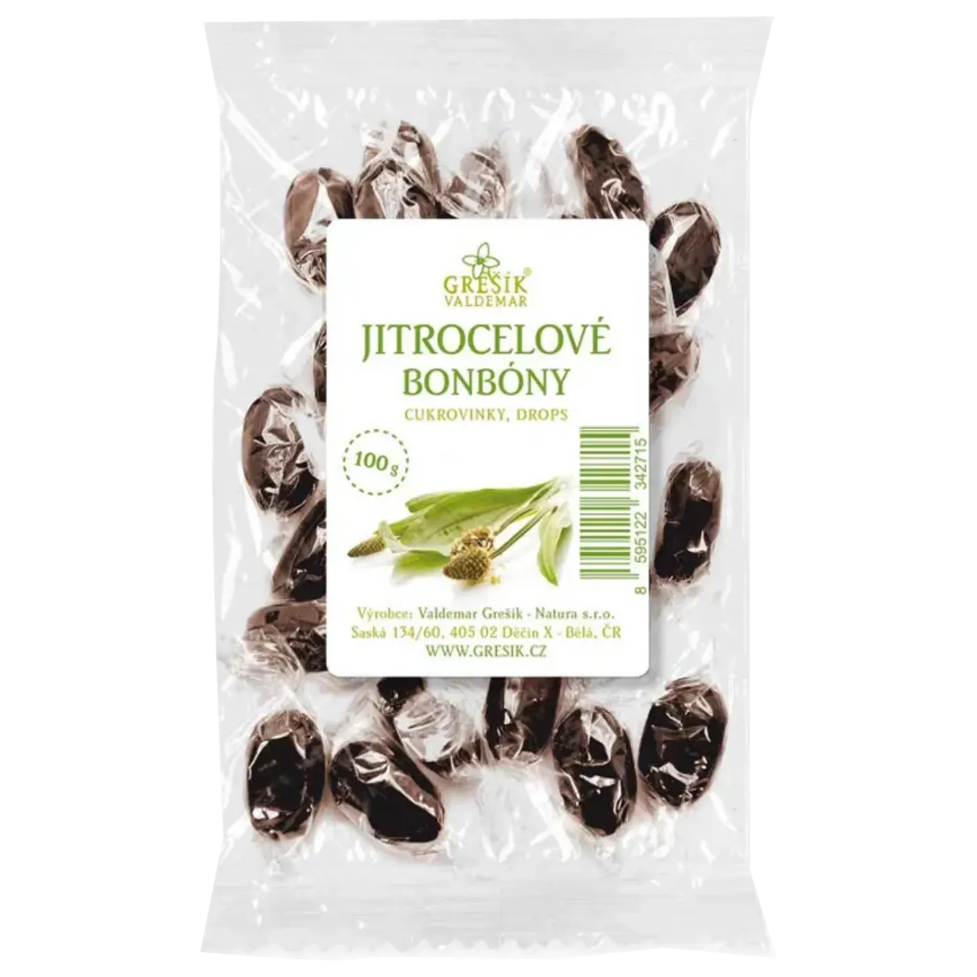 Cukr, glukózový sirup, jitrocelový výluh (10,9 %), kandysový sirup, karamelový sirup, přírodní extrakt (jitrocel 0,5 %, hořec)