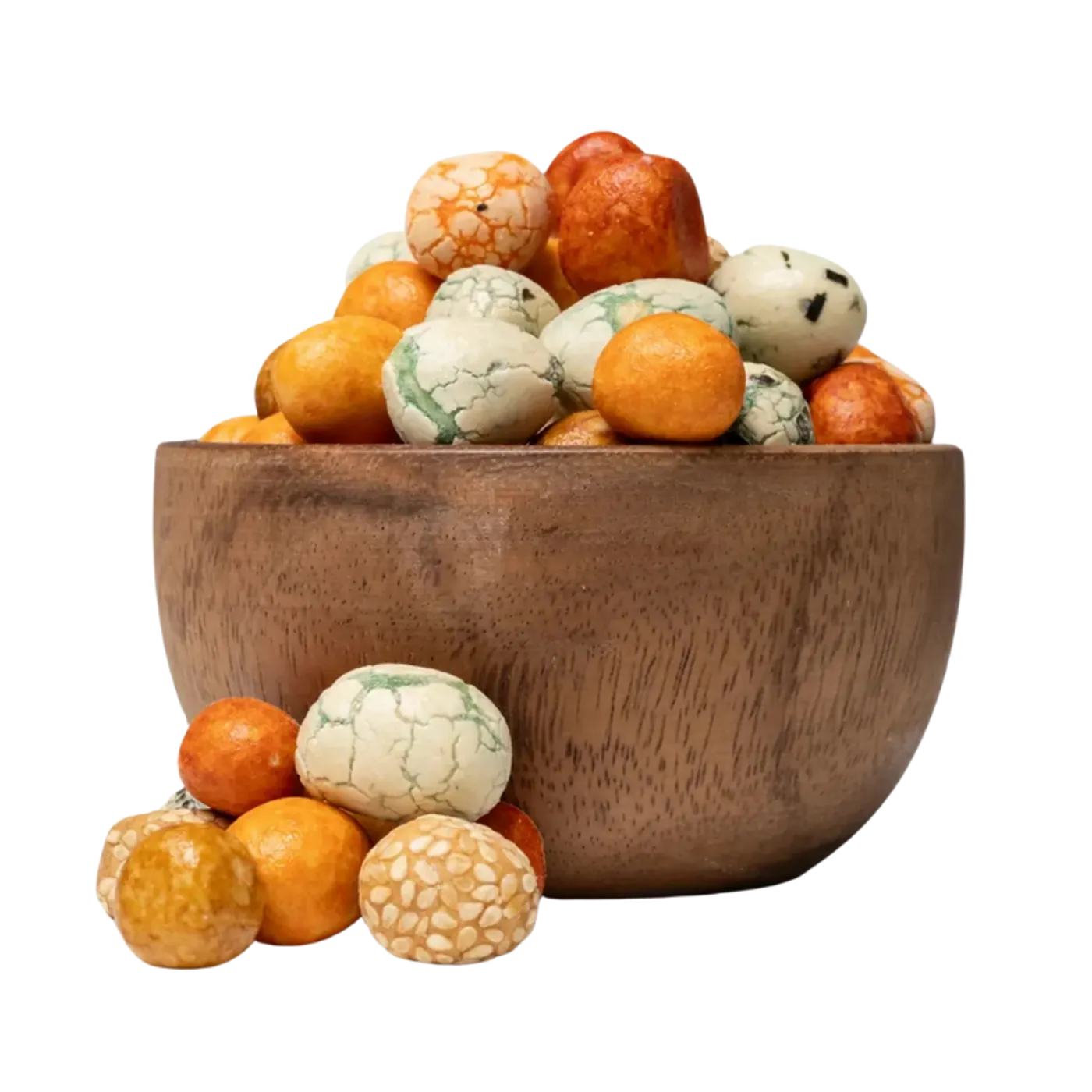 Tato směs spojuje arašídy v křupavém těstíčku s chutí sójové omáčky, mořských řas a výběrového koření. Je to ideální slaná pochoutka k vínu nebo pivu, která zaujme nejen svou barevností, ale i vyváženým poměrem koření a bylinek. Skvělá volba pro ty, kteří hledají originální alternativu ke klasickým chipsům.