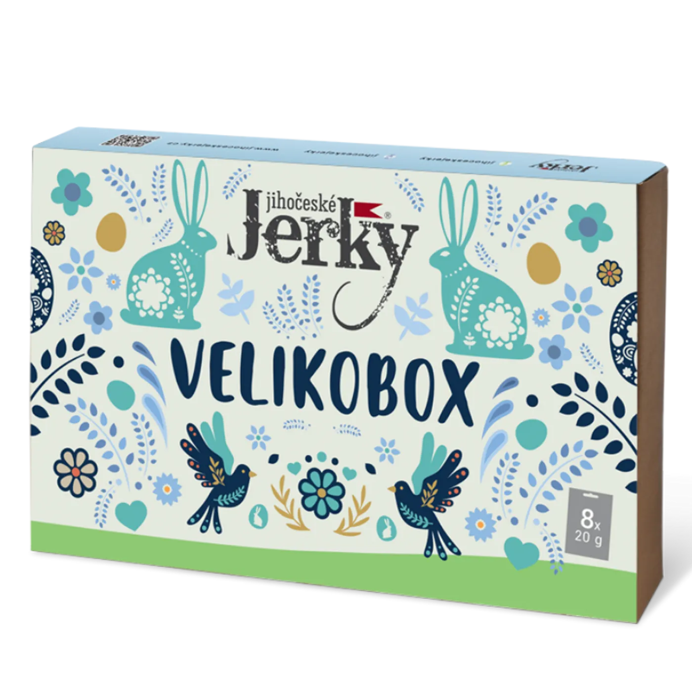 Originální dárková kazeta se stylovým velikonočním přebalem, která potěší každého milovníka masa a poctivého jerky.