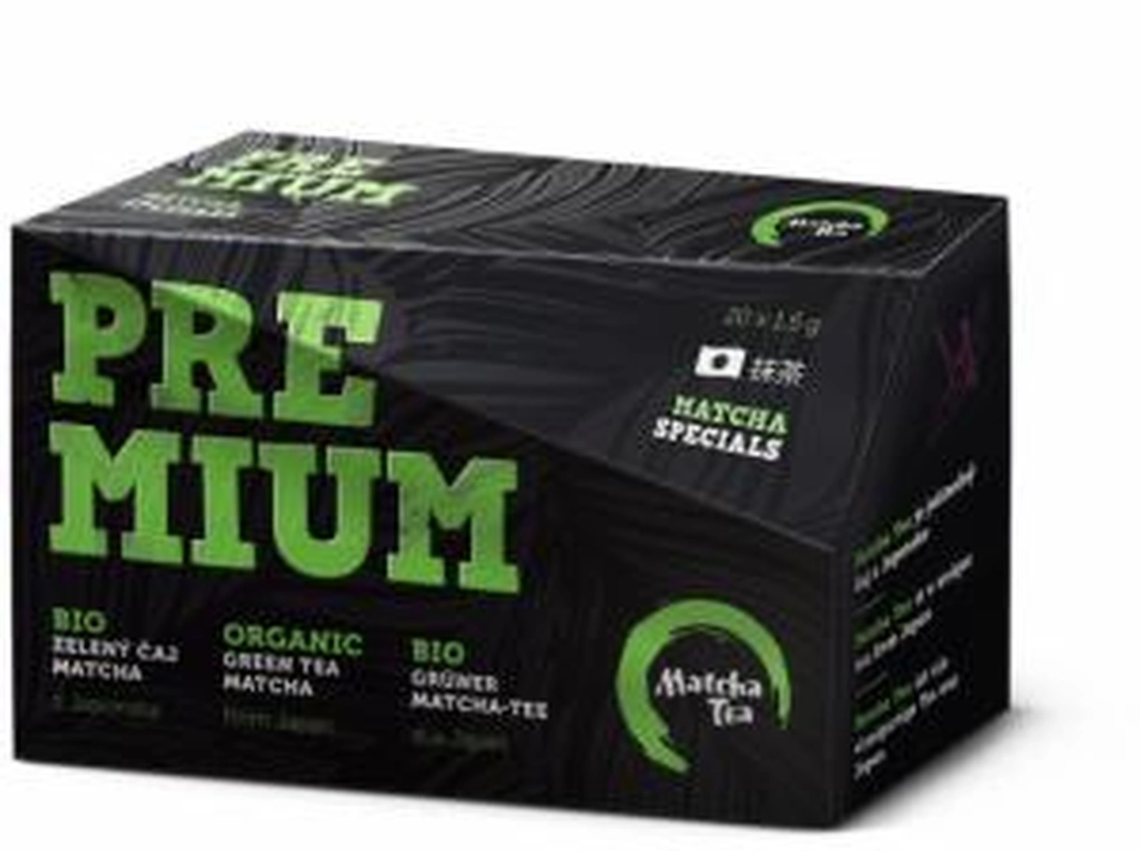 - Bio Matcha Tea Premium je ještě zelenější, s větším obsahem aminokyselin a vyšším podílem kofeinu než Bio Matcha Tea Harmony