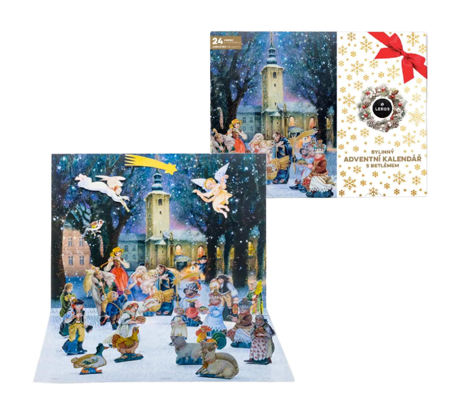 Tento kalendář nabízí 24 různých bylinných čajů, které vám každý den přinesou chvíli klidu a pohody. Navíc obsahuje 24 ručně malovaných figurek od talentované malířky Evy Milotové, které vám umožní sestavit si vlastní betlém. Každá postavička je detailně propracovaná a přináší do vašeho domova tradiční vánoční atmosféru.