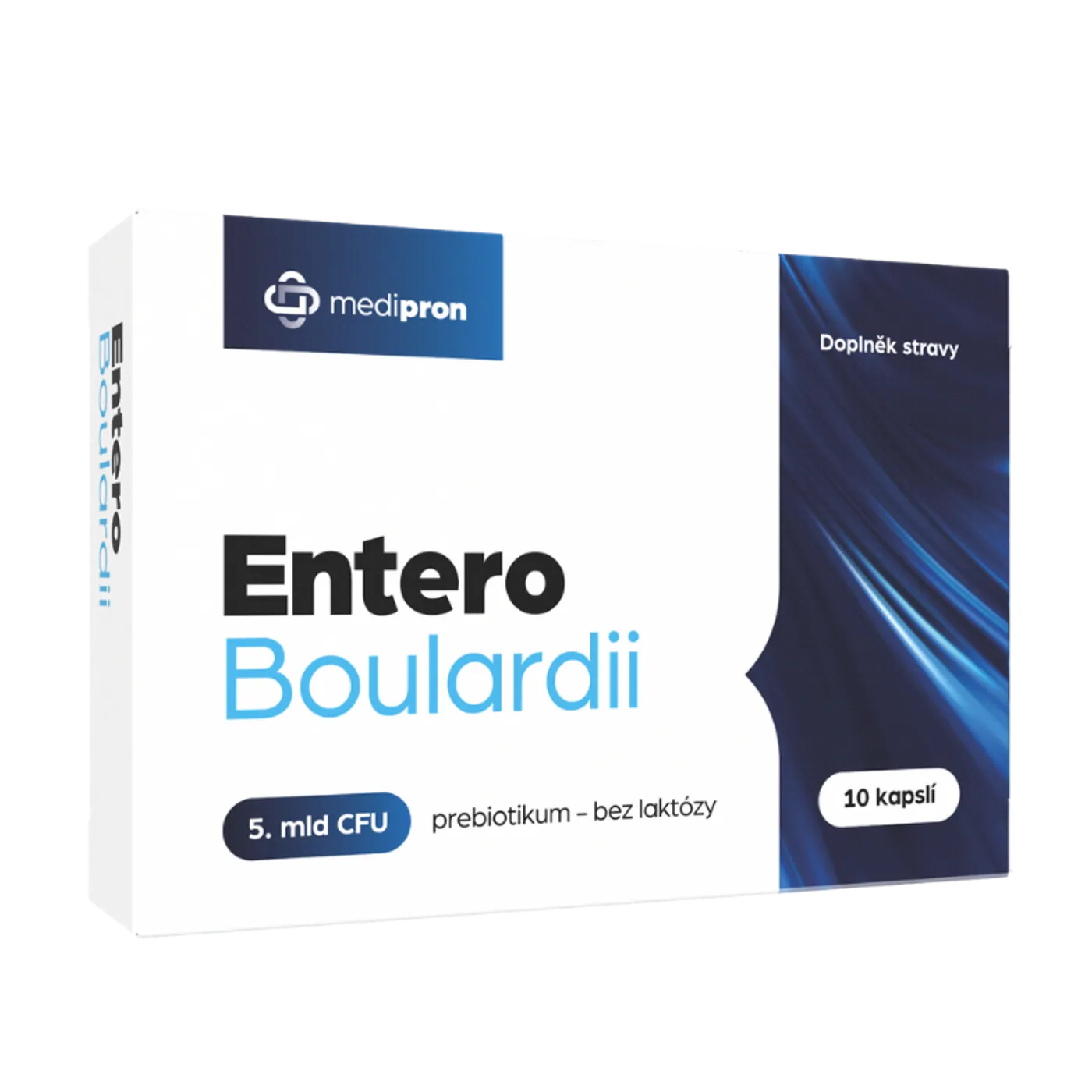 Kapsle s probiotickou kvasinkou Saccharomyces boulardii a prebiotikem inulinem – bez laktózy a bez nutnosti chlazení.