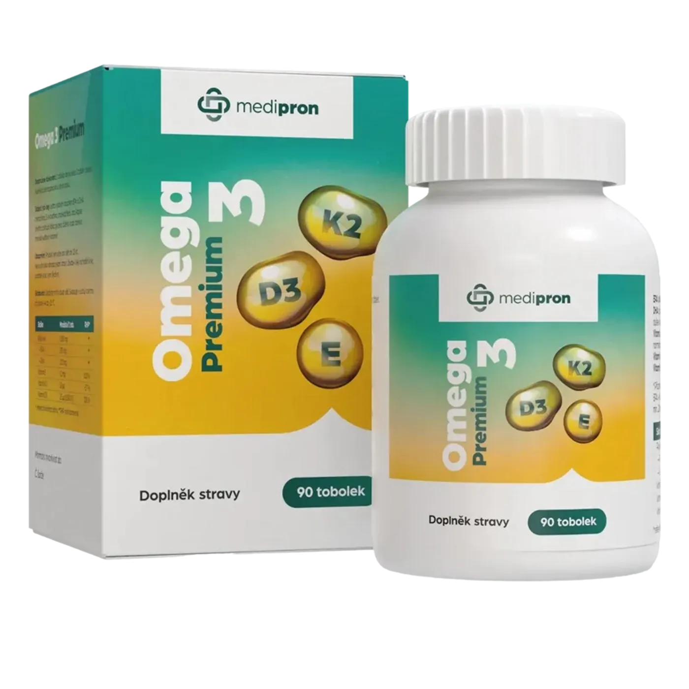 rybí olej s extra vysokým obsahem EPA a DHA, menachinon, D-α-tokoferol, cholekalciferol, obal kapsle (želatina, zvlhčující látka: glycerol, čištěná voda, barvivo: amoniak-sulfitový karamel)