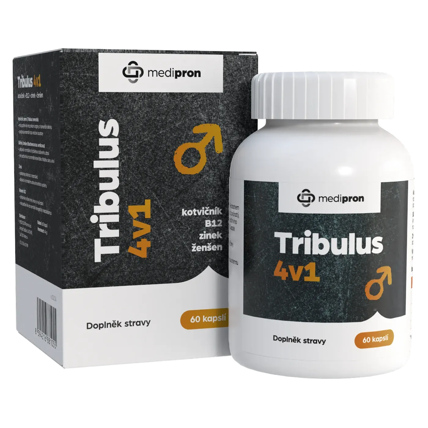 Tribulus terrestris standardizovaný extrakt s 90% obsahem saponinů, Eleutherococcus senticosus extrakt, bisglycinát zinečnatý, protispékavé látky: oxid křemičitý a stearát hořečnatý rostlinného původu, plnidlo: kukuřičný škrob, kyanokobalamin, HPMC kapsle (hypromelóza)