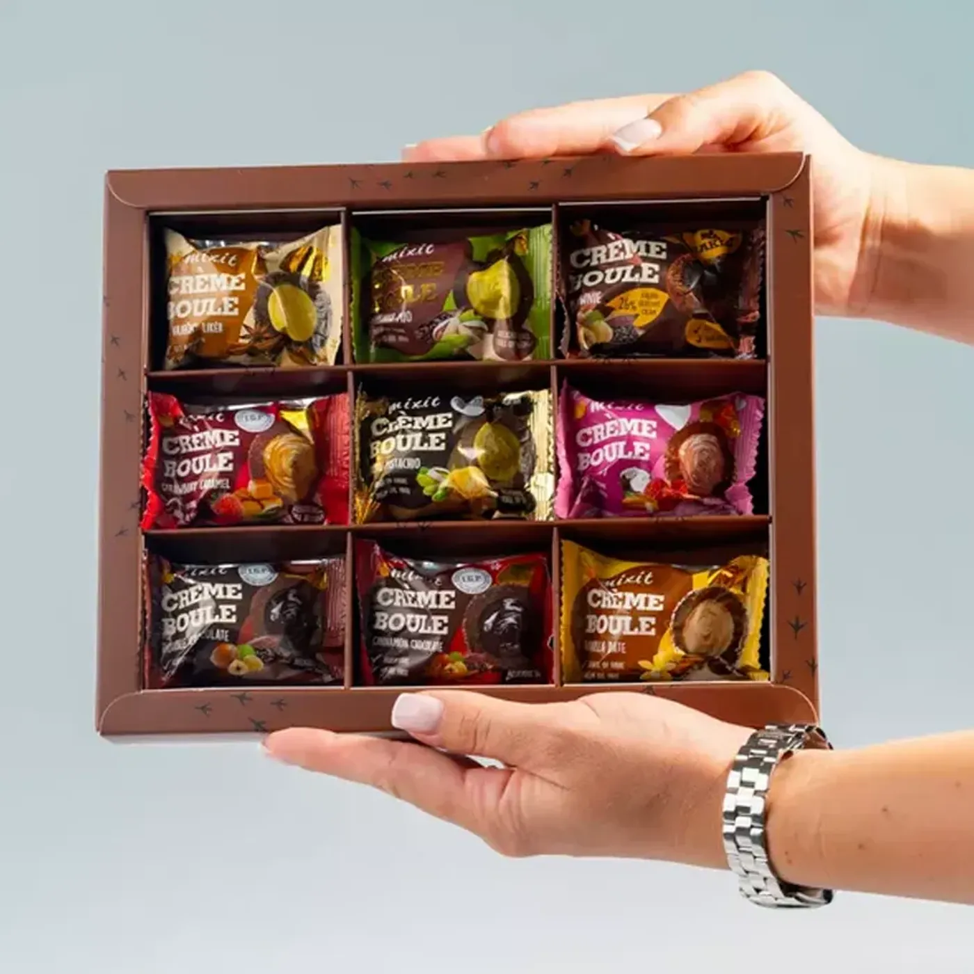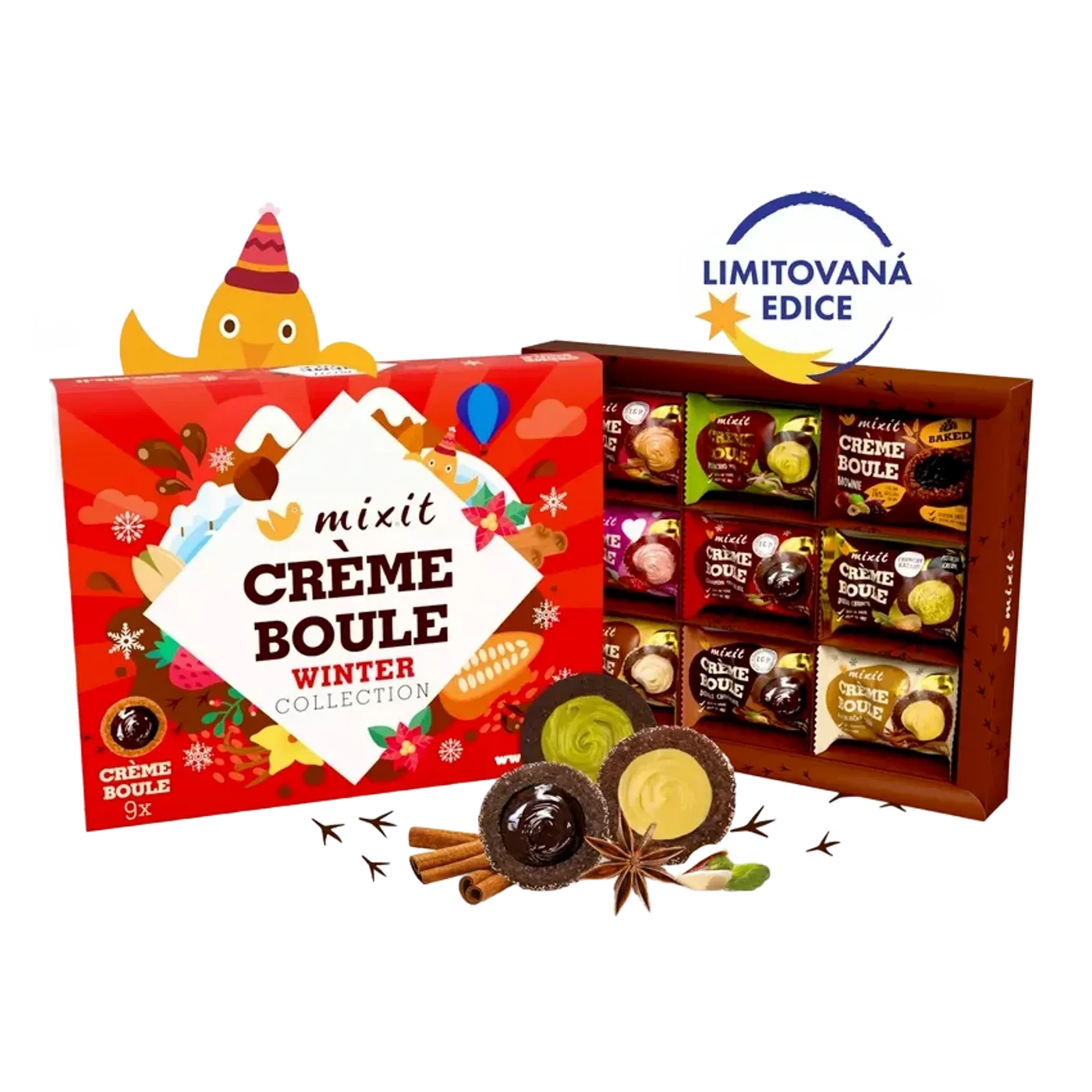 Degustační sada obsahuje 9 jedinečných Crème boulí s vánočními příchutěmi: