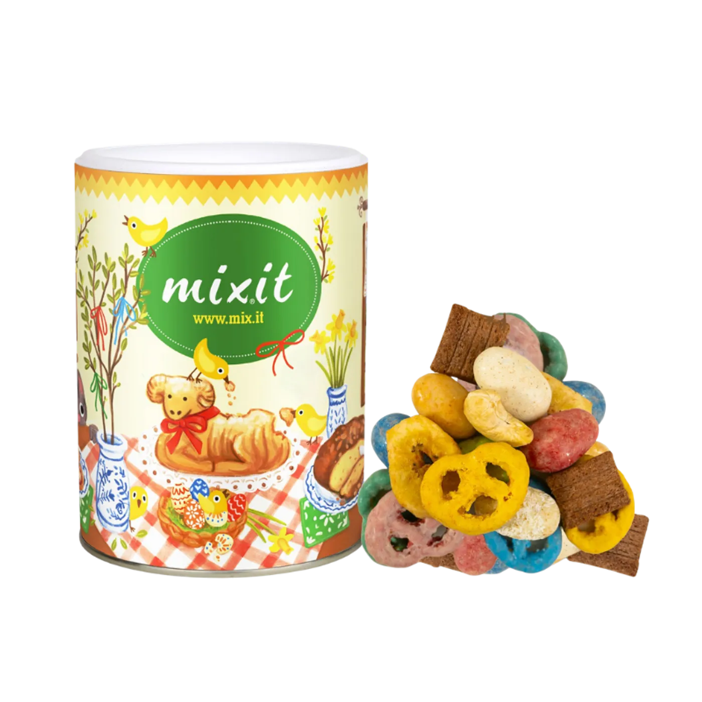 Tento tubus nabízí směs křupavých mandlí a kešu, sladkých preclíků, kakaových polštářků a čokoládových vajíček v šesti příchutích. Všechny ingredience jsou pečlivě vybrané, aby vznikla chutná a pestrá směs bez palmového oleje a umělých barviv. Skvělá volba pro sladkou odměnu, jako součást dárku nebo jednoduše na mlsání kdykoliv během dne.