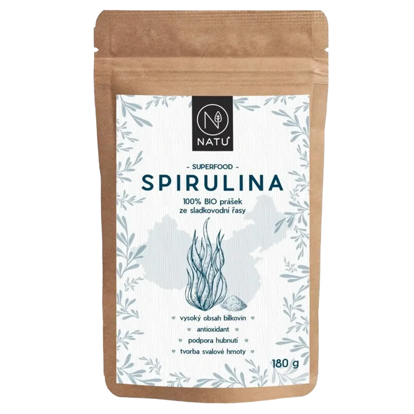Pravidelná konzumace nápoje ze spiruliny pomáhá při hubnutí, spalování tukových zásob a při budování svalové hmoty. NATU prášek ze spiruliny je v organické BIO kvalitě. Zpracovává se velmi šetrným způsobem, neobsahuje geneticky modifikované složky GMO.