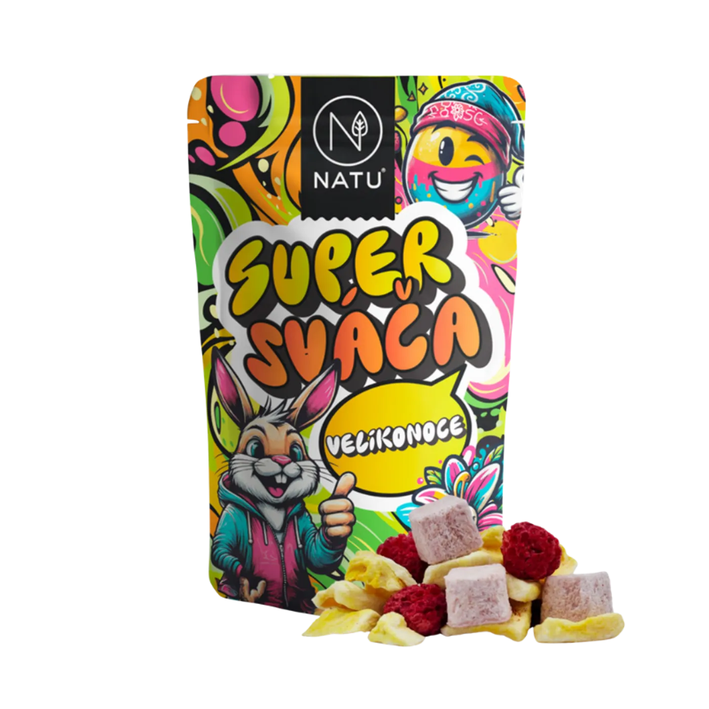 Tato velikonoční limitka je ideální zdravou alternativou pro malé koledníky. Uvnitř veselého balení najdeš křupavé kousky ovoce a speciální třešňovo-jablečné čtverečky s kokosovým mlékem, které dodají energii na koledování i školní úkoly.