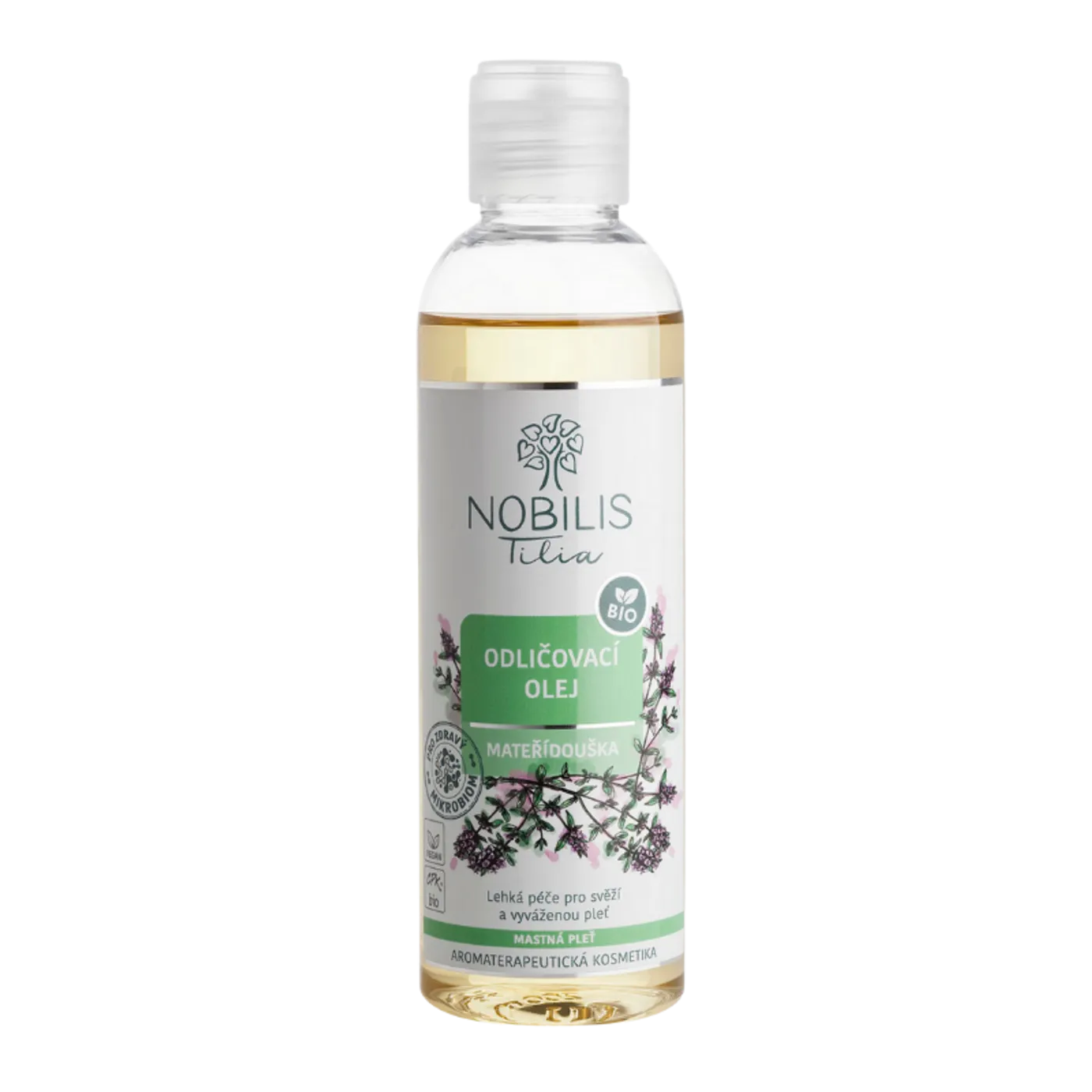 Lehký odličovací olej s mateřídouškou šetrně odstraňuje make-up, nečistoty i přebytečný kožní maz, aniž by mastnou pleť vysušoval.