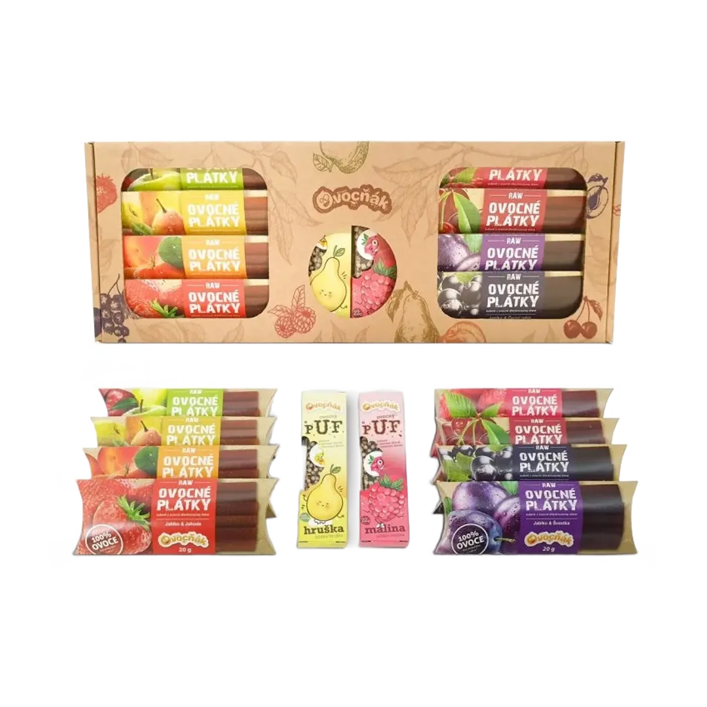 Tato dárková sada od Ovocňáka spojuje to nejlepší z přírody – křupavé ovocné plátky a nadýchané pufované dobroty. Ideální jako dárek pro děti, dospělé i milovníky zdravého životního stylu. Co najdete uvnitř: