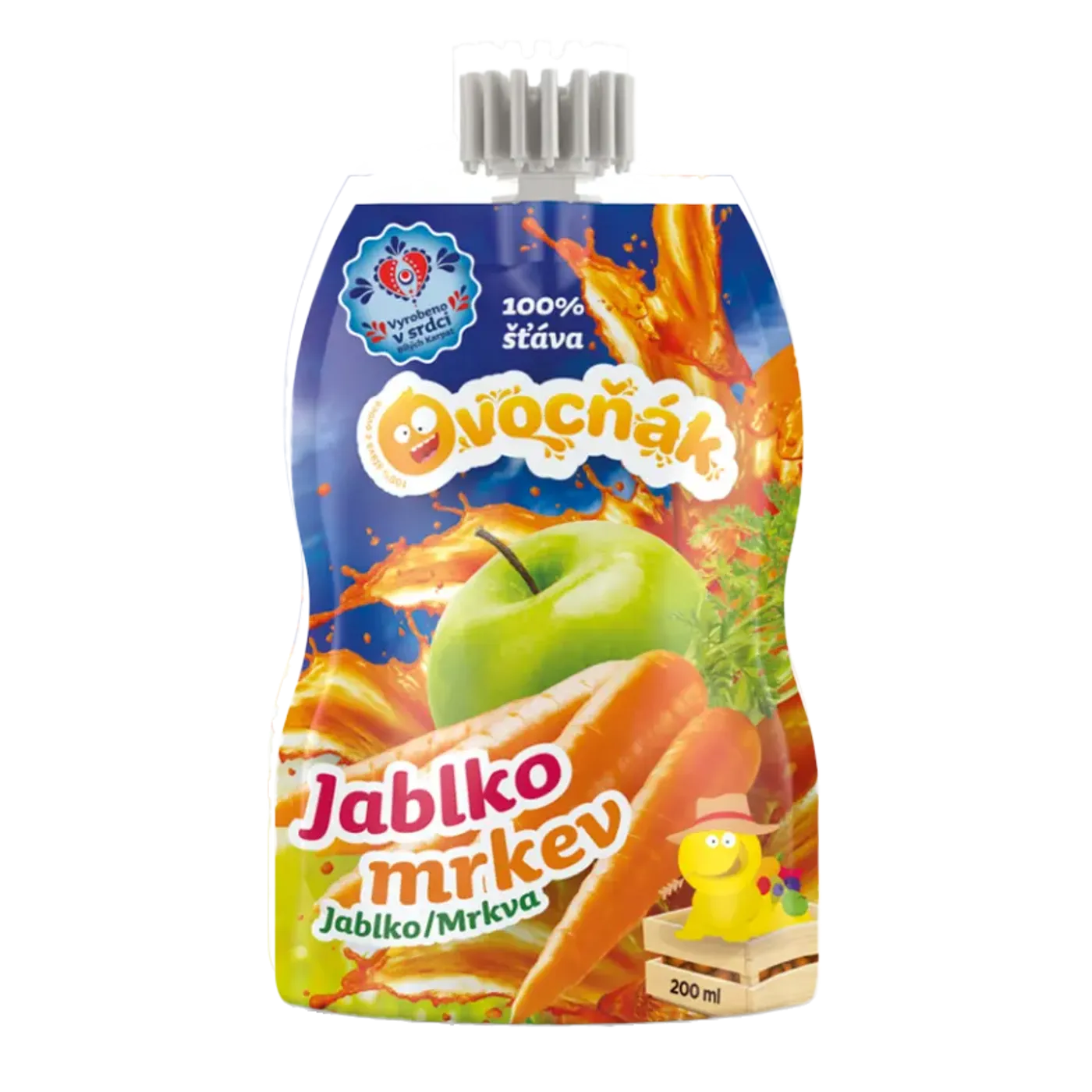 Jablečná šťáva 80 %, mrkvová šťáva 20 %.