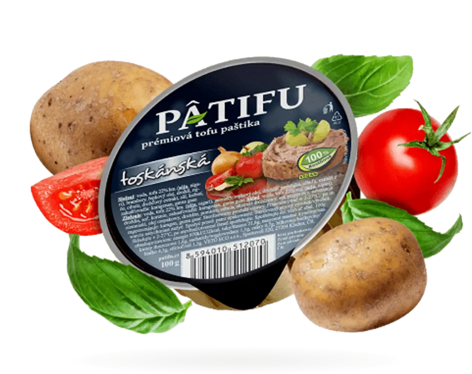 PATIFU paštika se z 1/4 skládá z tofu, které si společnost Veto sama vyrábí a ještě za čerstva přidává do pomazánek.