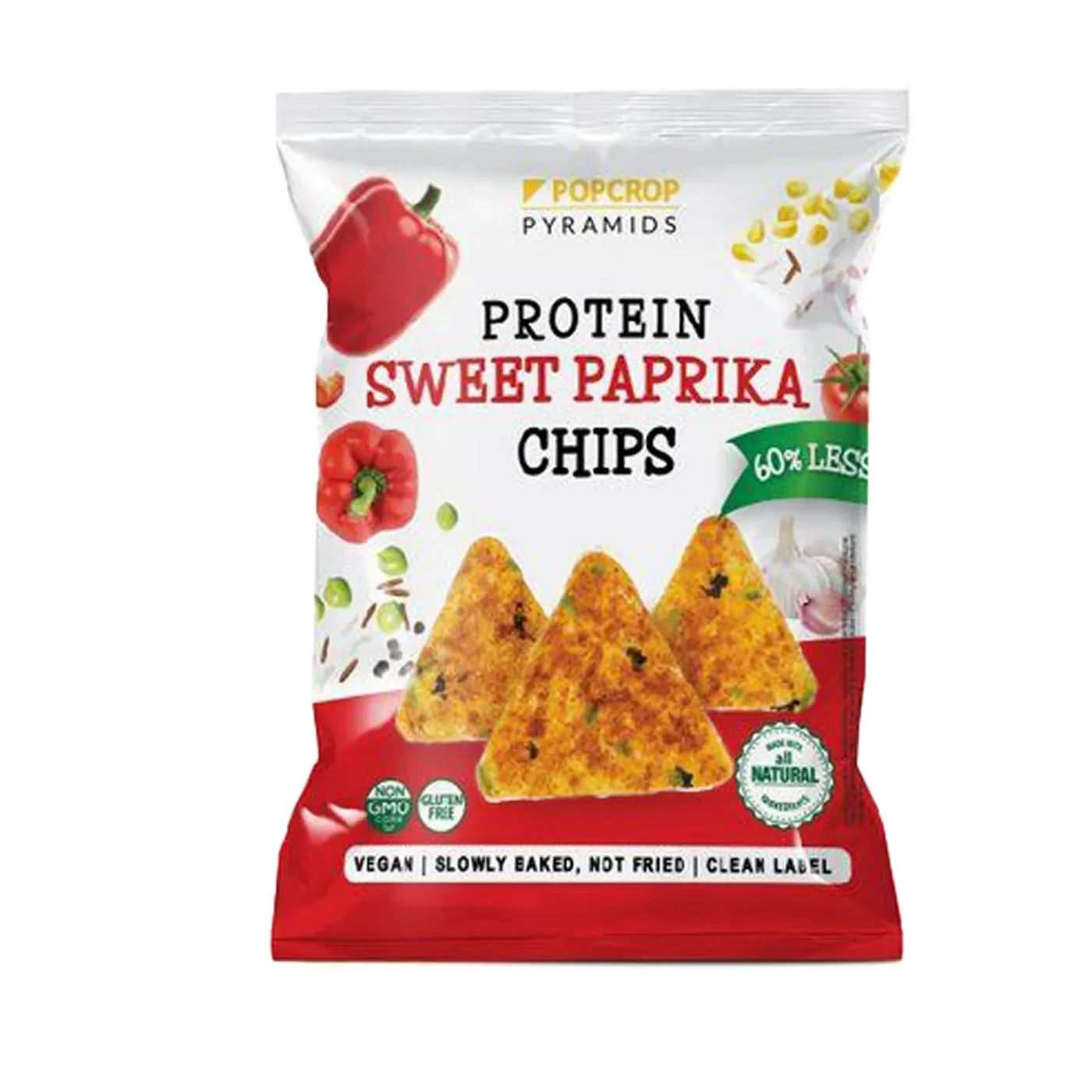 Popcrop Proteinové chipsy s paprikovou příchutí jsou ideální volbou pro všechny, kteří hledají chutný, křupavý snack s vyšším obsahem bílkovin. Díky pečené úpravě, kvalitním surovinám a výrazné paprikové chuti představují skvělou alternativu ke klasickým brambůrkům. ¨