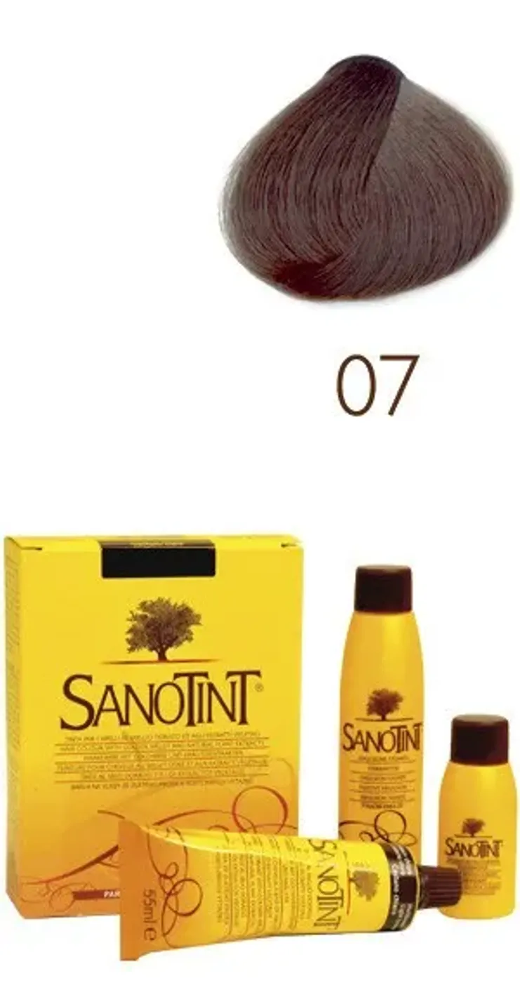 SANOTINT N.07 - INGREDIENTS: AQUA, CETEARYL ALCOHOL, ETHANOLAMINE, POLYSORBATE 80, CETEARETH-30, SODIUM LAURYL SULFATE, ISOPROPYL STEARATE, PROPYLENE GLYCOL, TETRASODIUM EDTA, PARFUM, ASCORBIC ACID, SODIUM HYDROSULFITE, PANICUM MILIACEUM EXTRACT, BIOTIN, CALCIUM PANTOTHENATE, OLEA EUROPAEA LEAF EXTRACT, VITIS VINIFERA LEAF EXTRACT, BETULA ALBA BARK EXTRACT, URTICA DIOICA LEAF/STEM JUICE, LIMONENE, BENZYL ALCOHOL, BENZYL SALICYLATE, AMYL CINNAMAL, p-PHENYLENEDIAMINE, p-AMINOPHENOL, m-AMINOPHENOL, 4-CHLORORESORCINOL, 2-AMINO-4-HYDROXYETHYLAMINOANISOLE SULFATE.