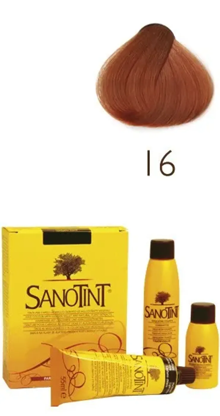 SANOTINT N.16 - INGREDIENTS: AQUA, CETEARYL ALCOHOL, POLYSORBATE 80, ETHANOLAMINE, CETEARETH-30, SODIUM LAURYL SULFATE, ISOPROPYL STEARATE, PROPYLENE GLYCOL, TETRASODIUM EDTA, PARFUM, ASCORBIC ACID, SODIUM HYDROSULFITE, PANICUM MILIACEUM EXTRACT, CALCIUM PANTOTHENATE, BIOTIN, VITIS VINIFERA LEAF EXTRACT, OLEA EUROPAEA LEAF EXTRACT, BETULA ALBA BARK EXTRACT, URTICA DIOICA LEAF/STEM JUICE, LIMONENE, BENZYL ALCOHOL, BENZYL SALICYLATE, AMYL CINNAMAL, p-AMINOPHENOL, 1-NAPHTHOL, p-PHENYLENEDIAMINE, p-METHYLAMINOPHENOL SULFATE, m-AMINOPHENOL, 4-CHLORORESORCINOL.