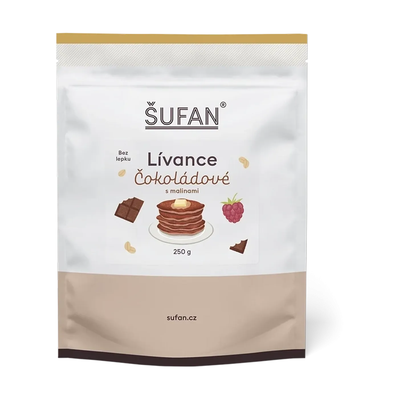 Lívance od Šufanu jsou důkazem, že zdravé může být zároveň neodolatelně chutné. Tato směs na přípravu nadýchaných lívanců kombinuje kvalitní čokoládu s lyofilizovanými malinami, které dodávají svěží ovocný kontrast.