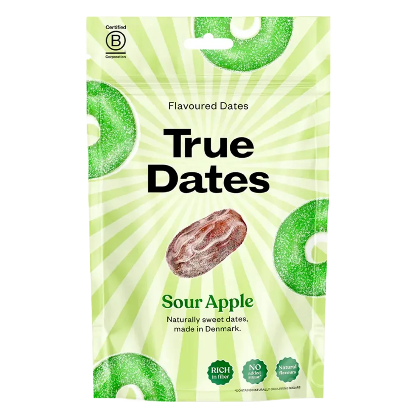 Objevte sladkokyselou harmonii v každém soustu. True Dates Datle s příchutí kyselého jablka jsou zdravější alternativou ke klasickým sladkostem.