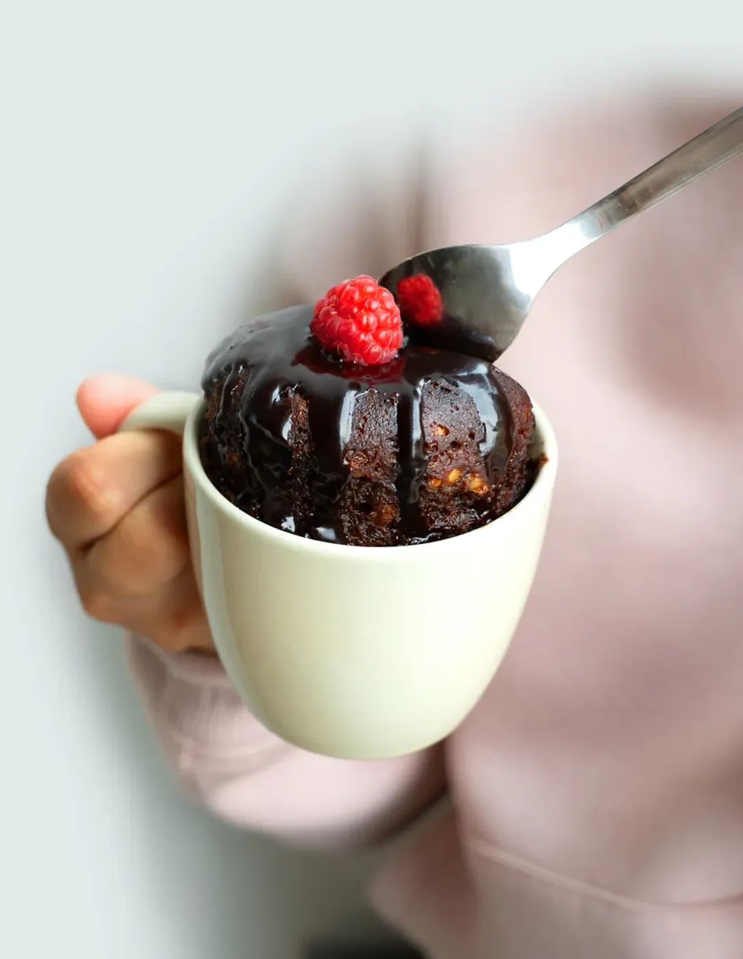 - nadýchaná textura – jemný, vláčný mug cake připravený během pár minut