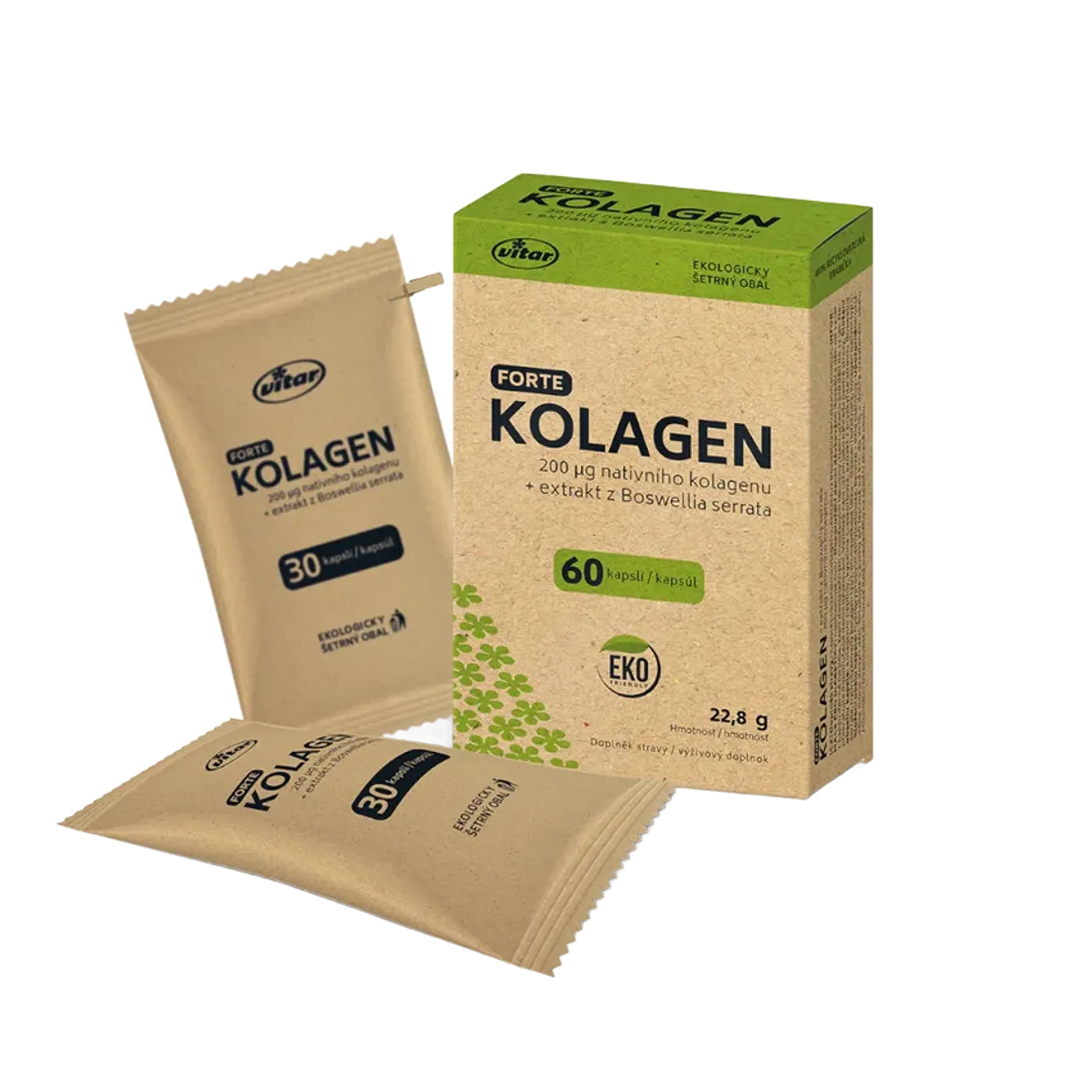 Obsahuje kombinaci nativního kolagenu typu II, kolagenu typu I, bioaktivních kolagenních peptidů, extraktu z Boswellia serrata a vitaminu C. Tato synergie pomáhá chránit kloubní struktury, pečovat o chrupavky, kosti a cévy – ideální pro aktivní životní styl i pro období zvýšené zátěže pohybového aparátu. Produkt je součástí ekologické řady Vitar EKO Friendly, která klade důraz na kvalitu surovin a minimální dopad na životní prostředí.