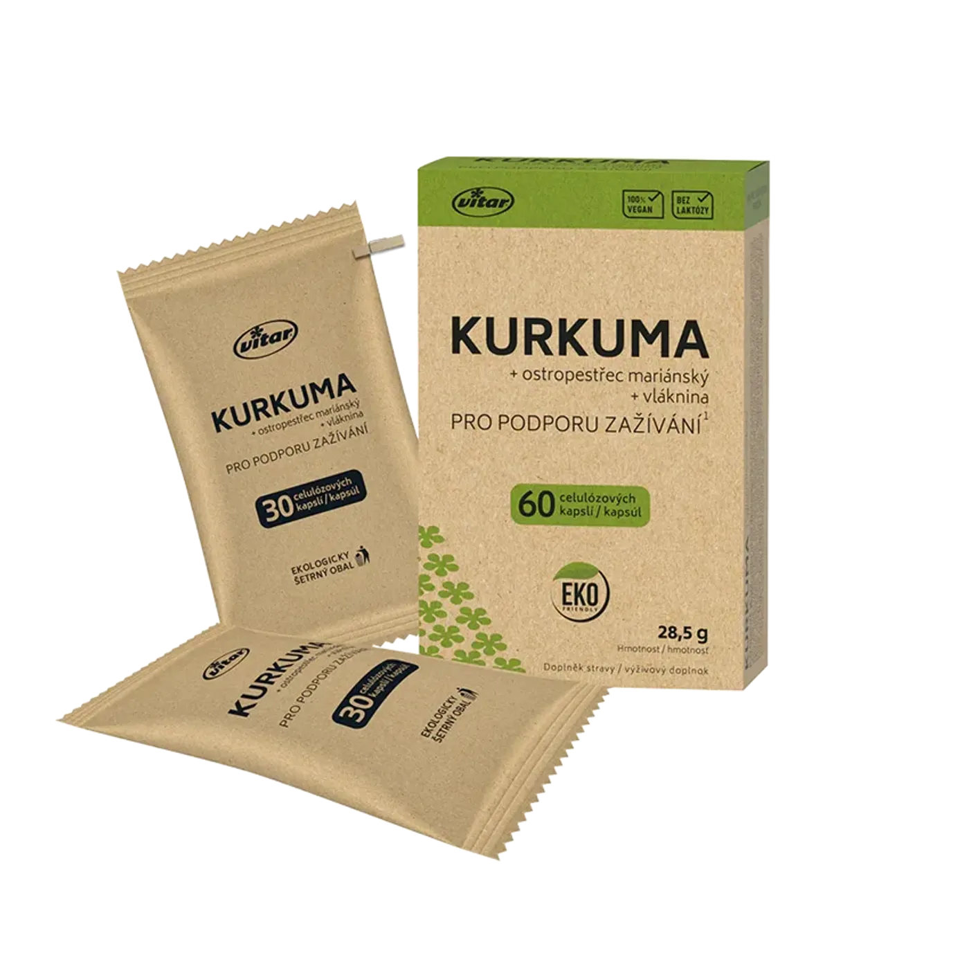 Nechutenství či nadýmání vám snadno mohou zkazit den. Přípravek na podporu zažívání Vitar EKO Kurkuma + ostropestřec mariánský pomůže navrátit vašemu trávicímu ústrojí rovnováhu a obnovit vaši pohodu.