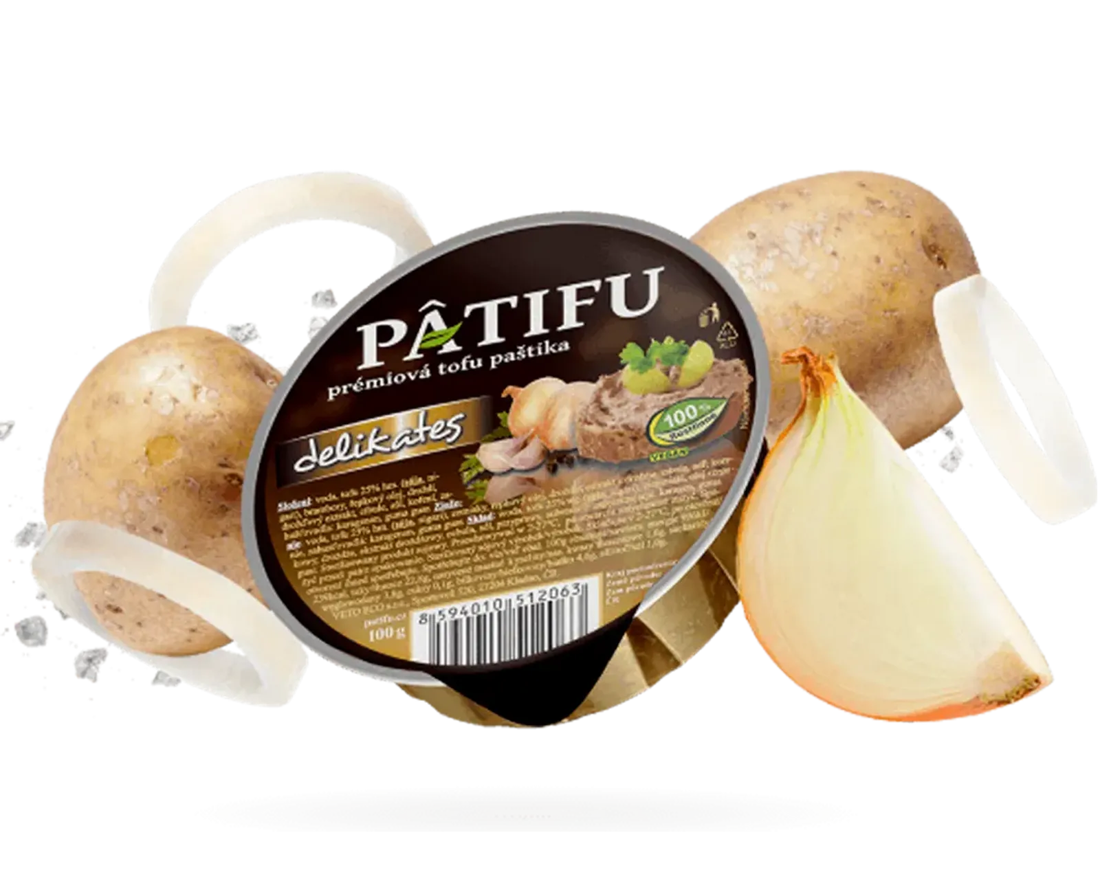 PATIFU paštika se z 1/4 skládá z tofu, které si společnost Veto sama vyrábí a ještě za čerstva přidává do pomazánek.