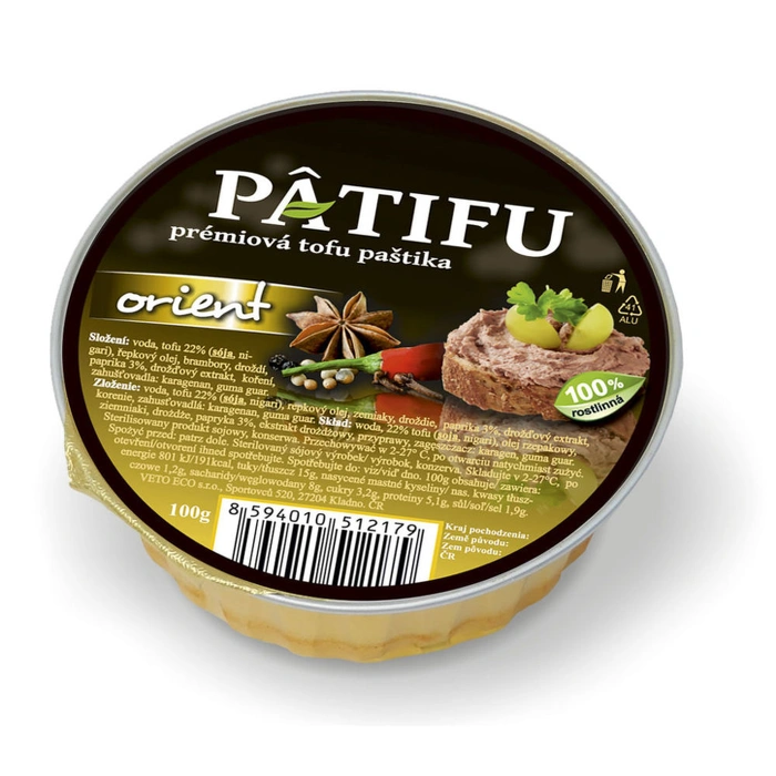PATIFU paštika se z 1/4 skládá z tofu, které si společnost Veto sama vyrábí a ještě za čerstva přidává do pomazánek.